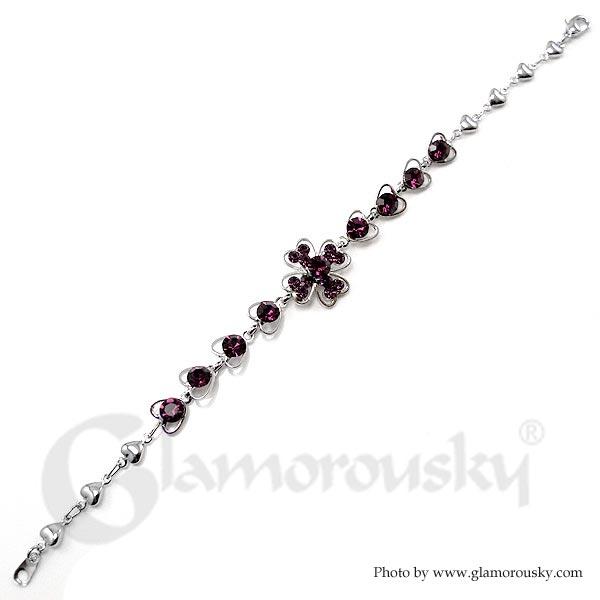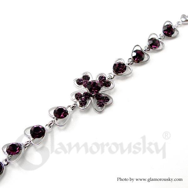 Elegant Flower Bracelet with Purple Austrian Element Crystal