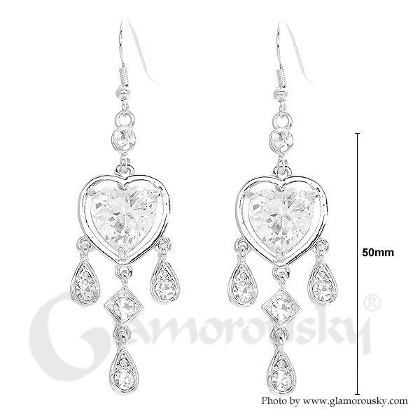Elegant Heart Shape Earrings with Silver Austrian Element Crystals and CZ