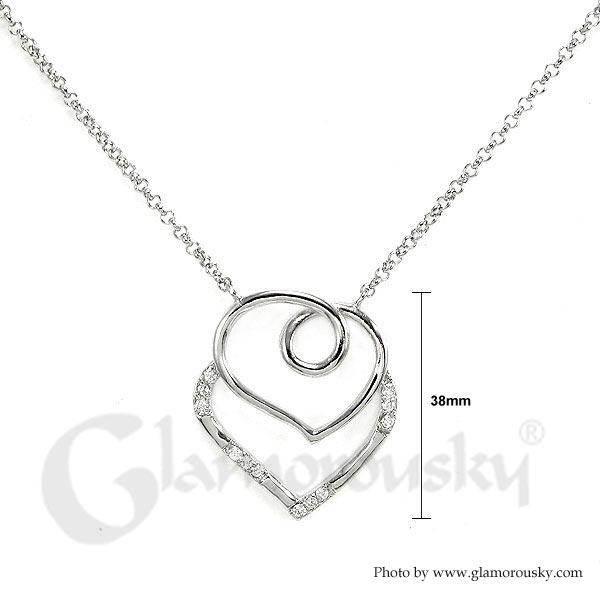 Elegant Silver Sweet Hearts Necklace with Silver Austrian Element Crystals