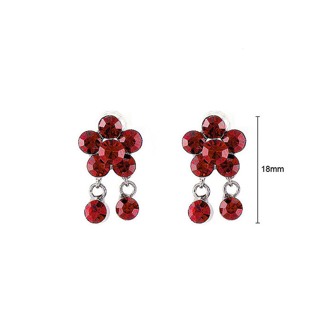 Red Flower Earrings with Red Austrian Element Crystal