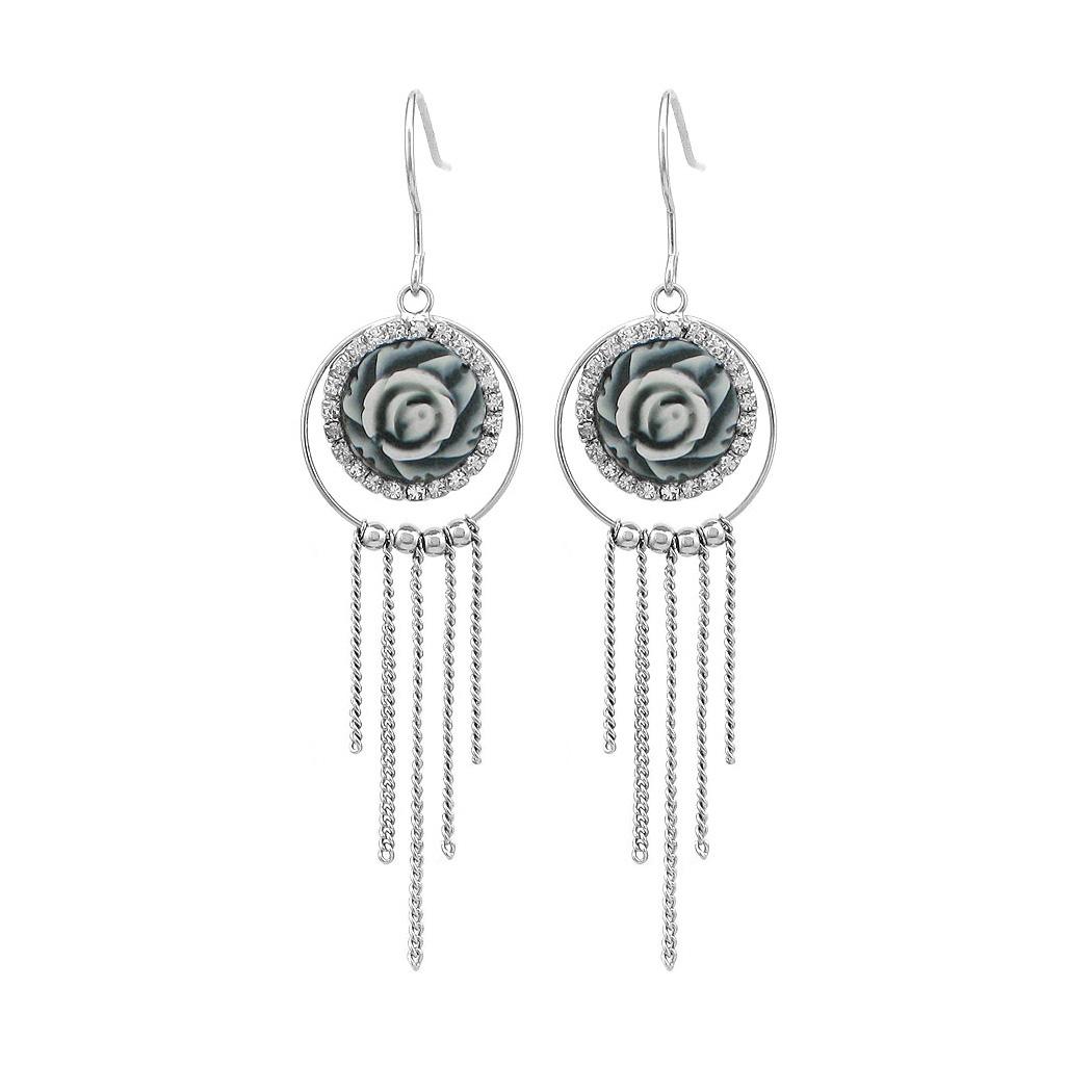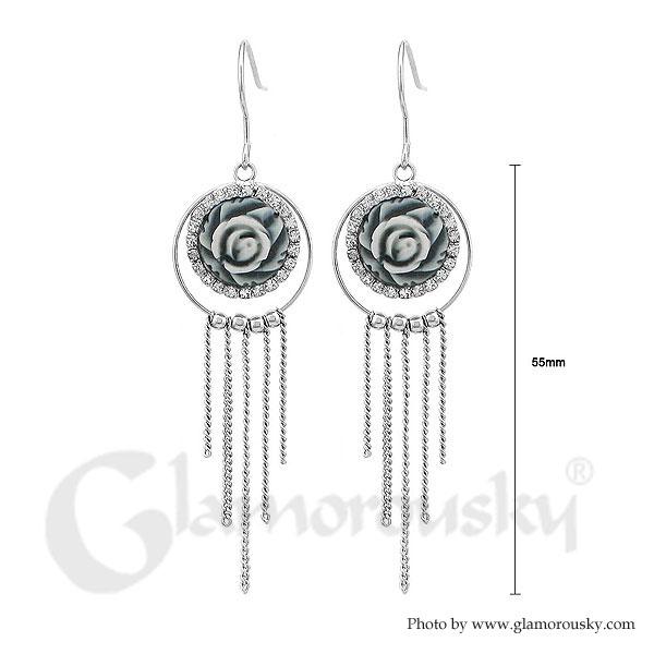 Elegant Rose Earrings with Silver Austrian Element Crystal