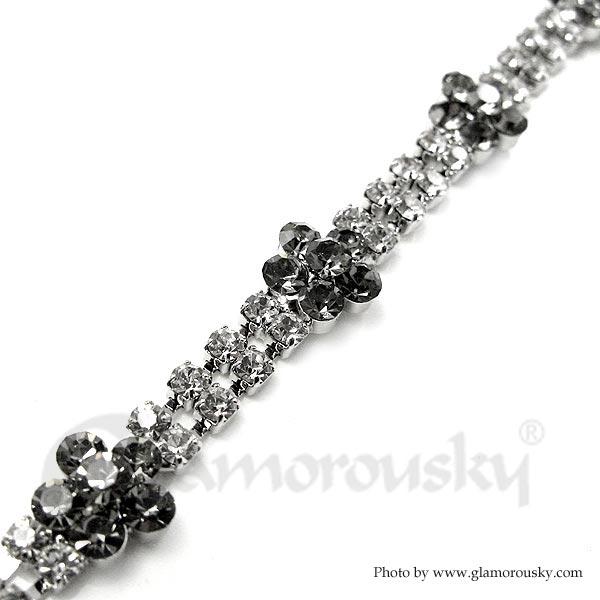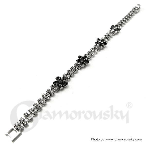 Elegant Flower Bracelet with Black Austrian Element Crystal