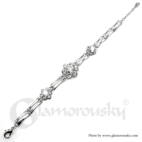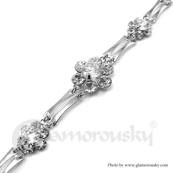 Elegant Flower Bracelet with Silver Austrian Element Crystal