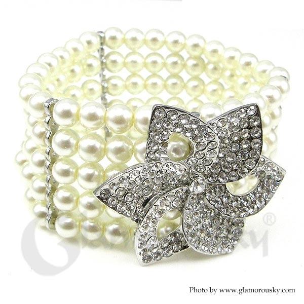 Fancy Fashion Pearl Bracelet with Silver Austrian Element Crystal