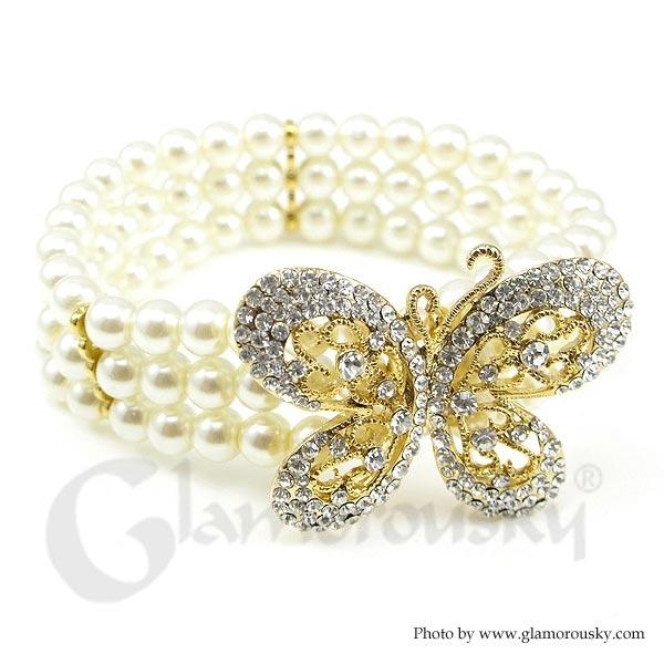 Fancy Fashion Pearl Bracelet with Silver Austrian Element Crystal
