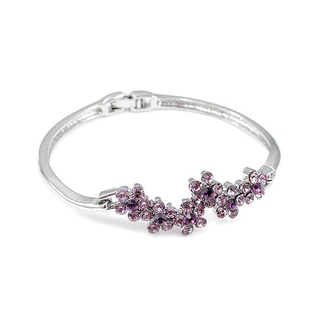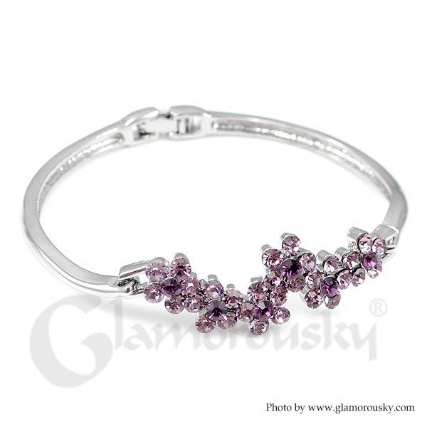 Elegant Flower Bangle with Purple Austrian Element Crystal