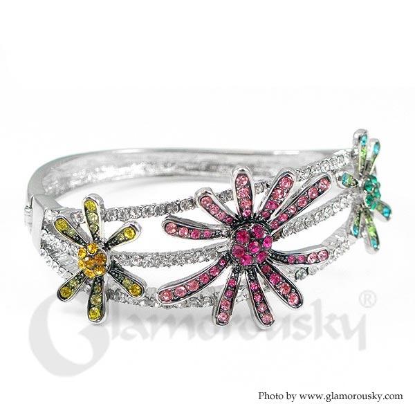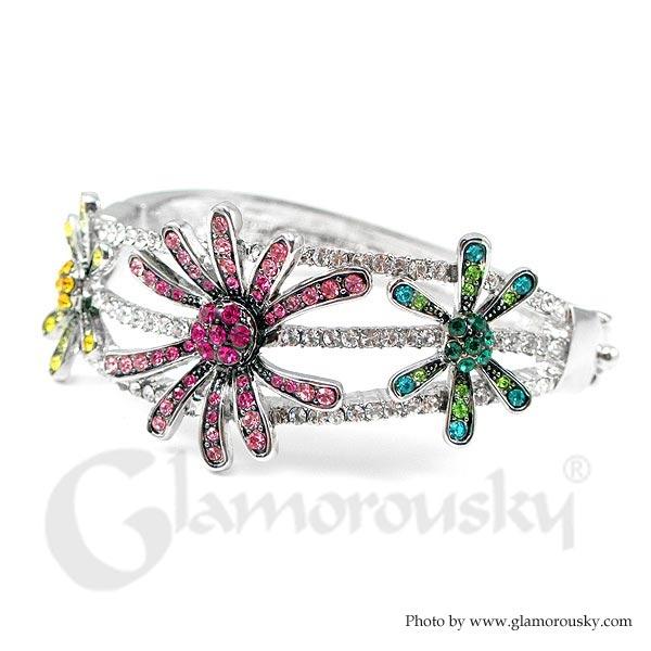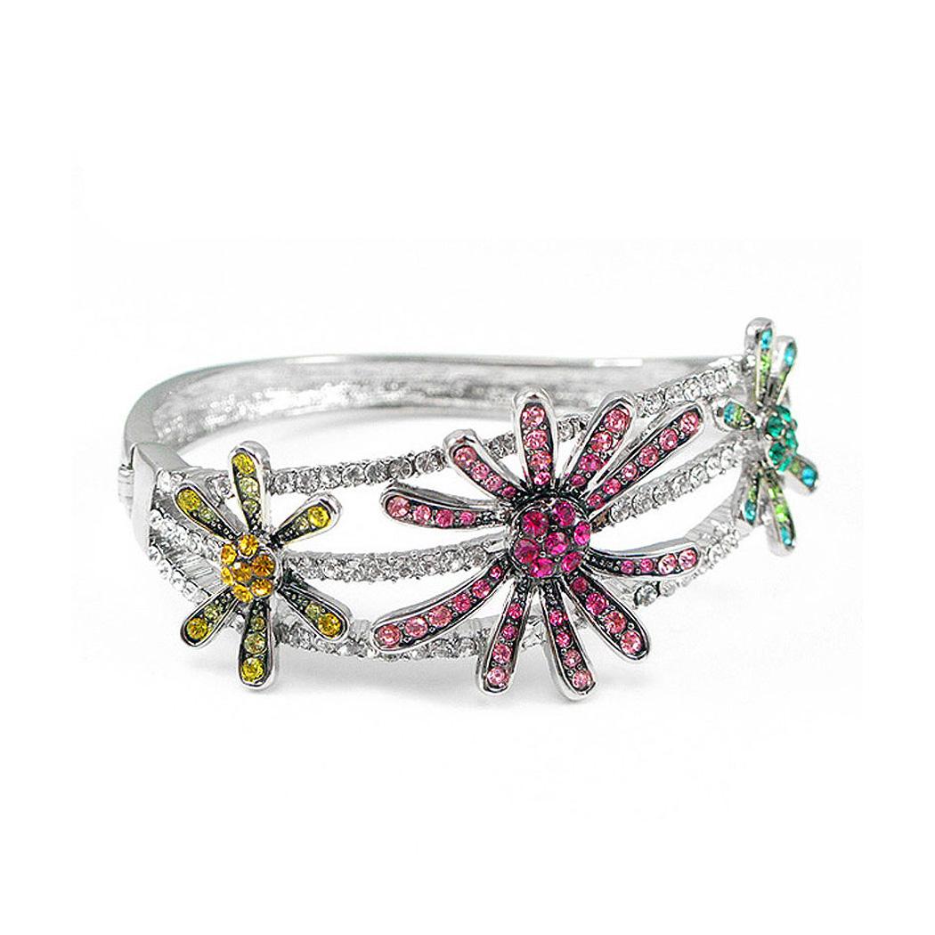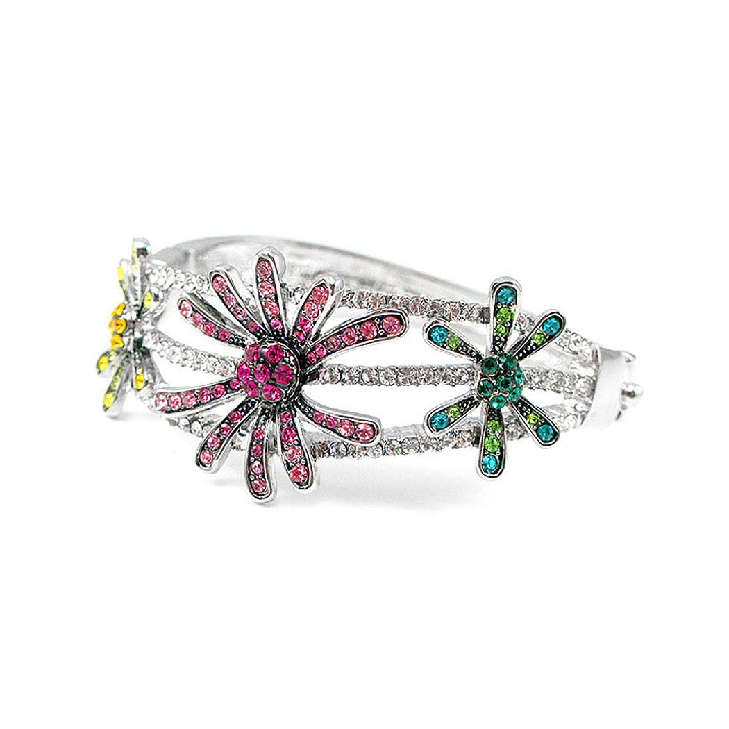Elegant Flower Bangle with Red Yellow and Green Austrian Element Crystal