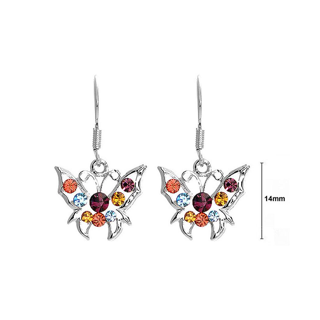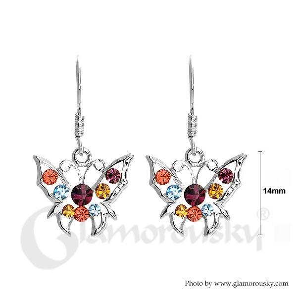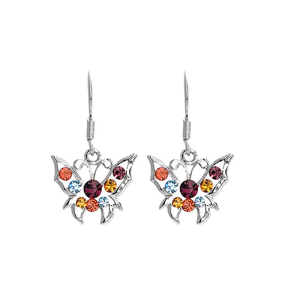Glistening Butterfly Earrings with Multi-color Austrian Crystals