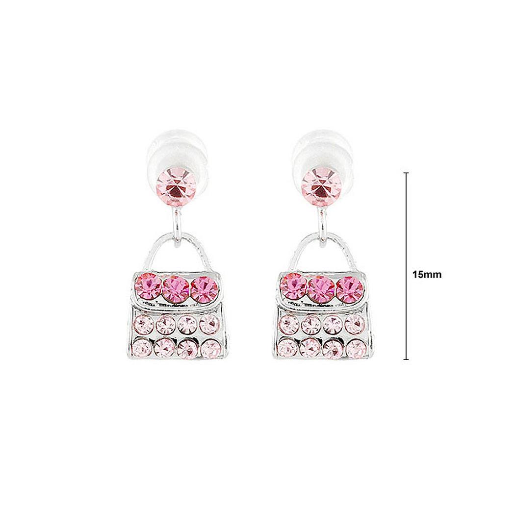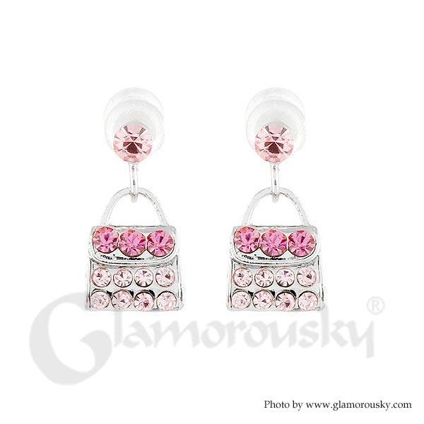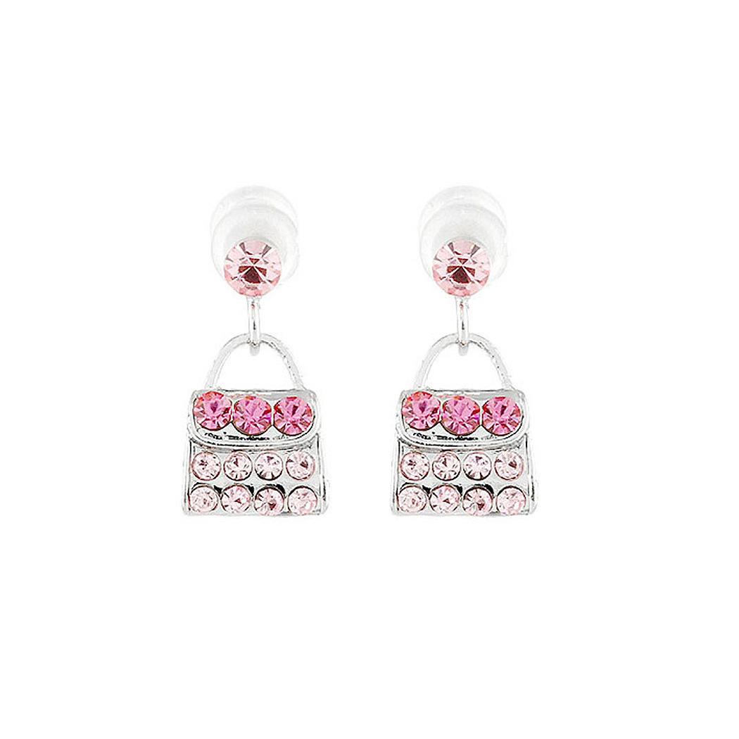 Elegant Handbag Earrings with Pink Austrian Element Crystals