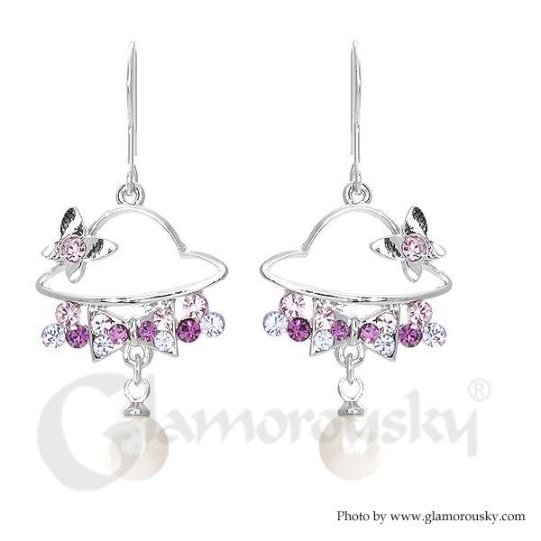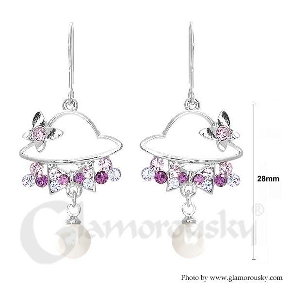 Elegant Hat Earrings with Purple Austrian Element Crystals