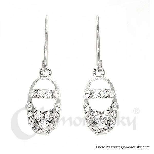 Sparkling Ballet Shoes Earrings with Silver Austrian Element Crystals