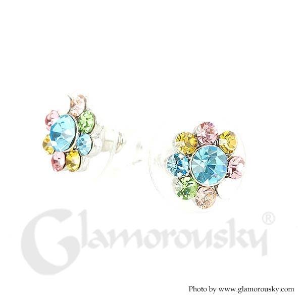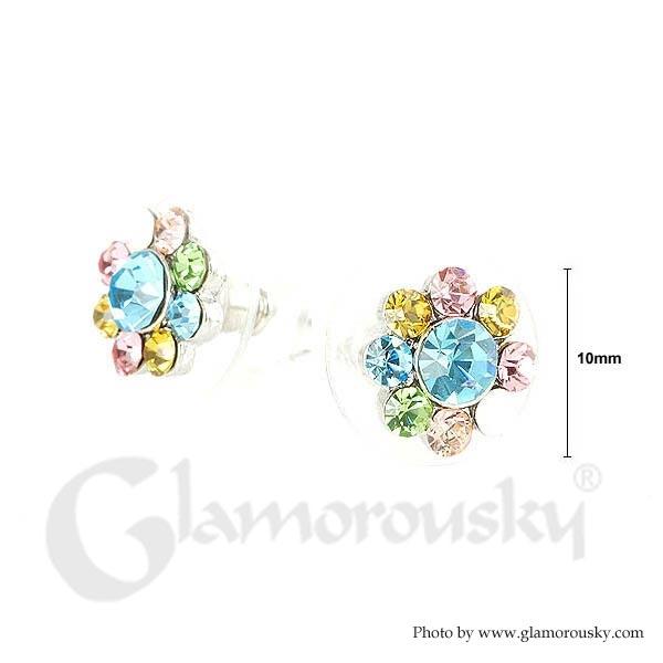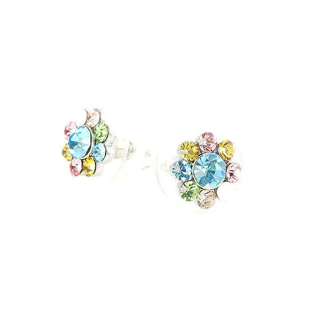 Fancy Flower Earrings with Multi Color Austrian Element Crystals