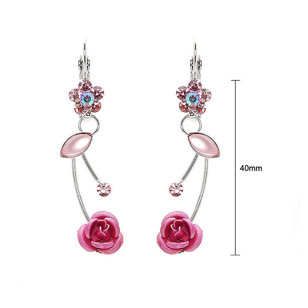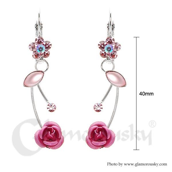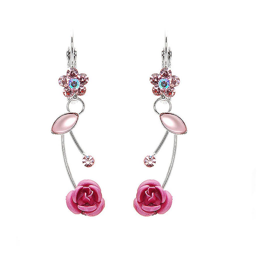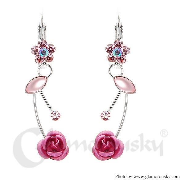 Elegant Pink Rose Earrings with Pink Austrian Element Crystals and Crystal Glass