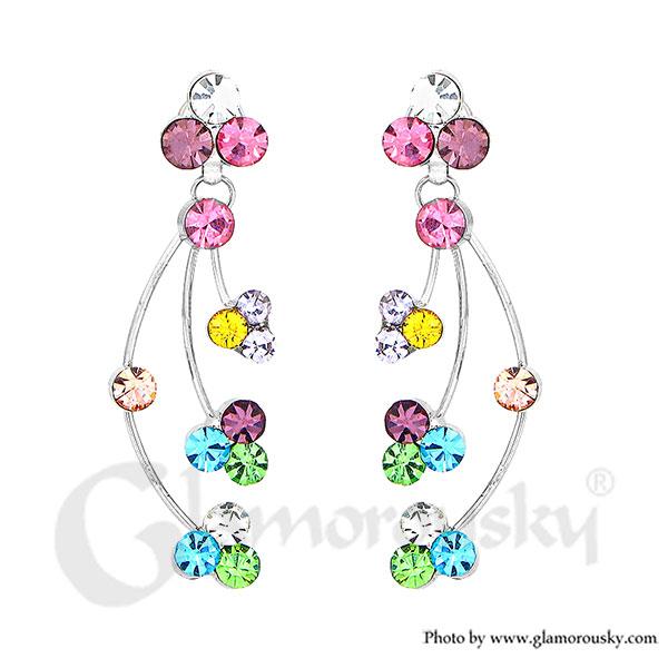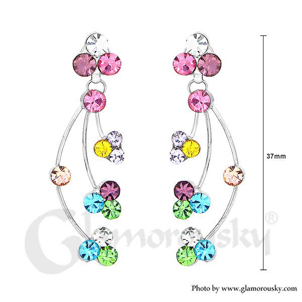 Elegant Rainbow Earrings with Multi-color Austrian Element Crystals