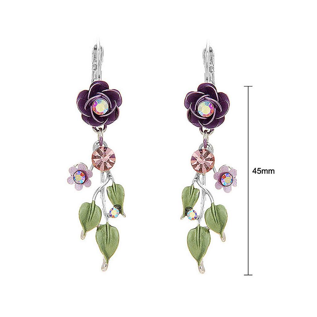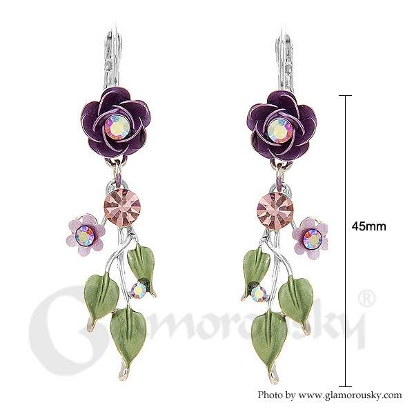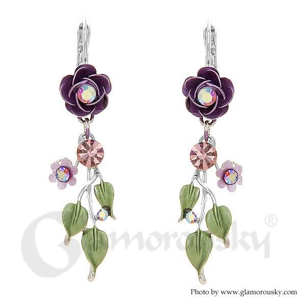 Violet Rose Earrings with Violet Austrian Crystals