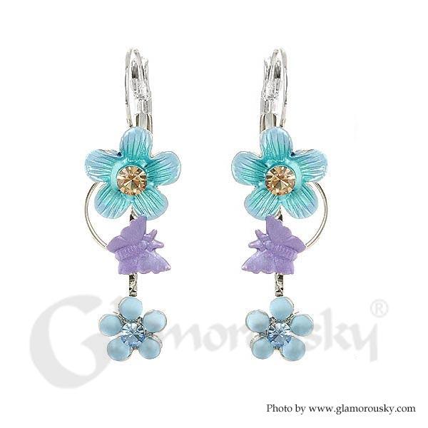 Fancy Multi Color Flower Earrings with Multi Color Austrian Element Crystals