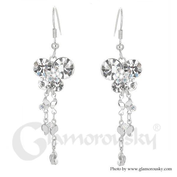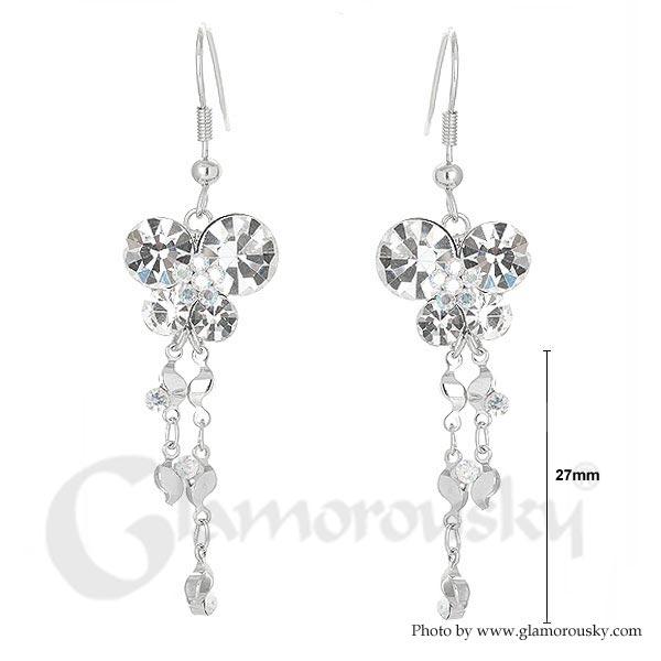 Dazzling Butterfly Earrings with Tassels and silver Austrian Element Crystals