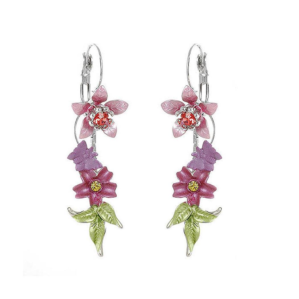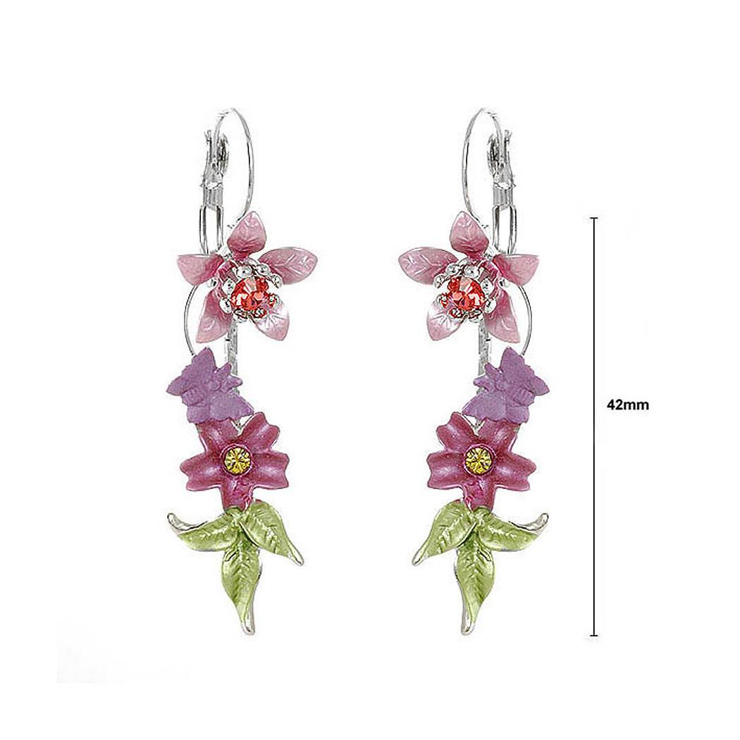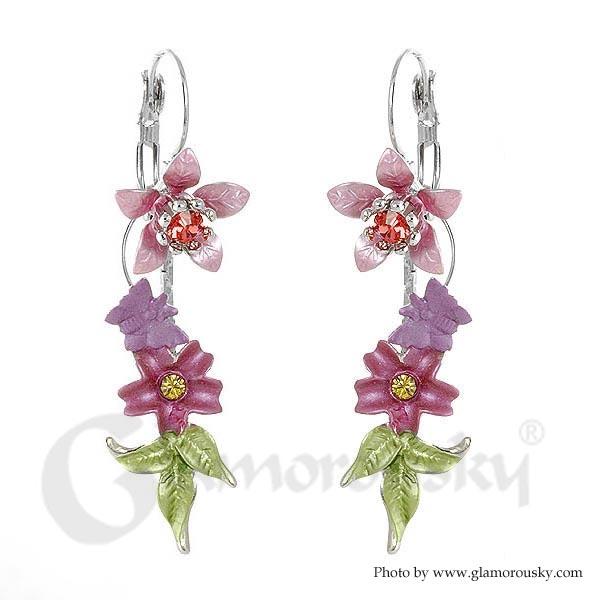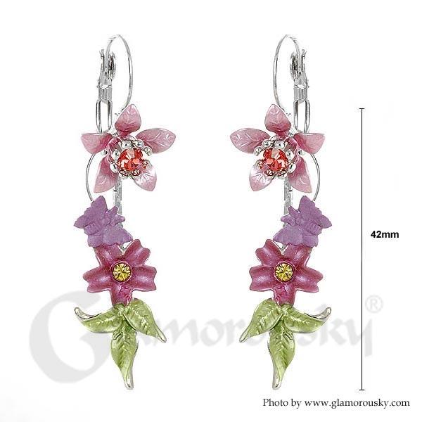 Fancy Multi Color Flower Earrings with Multi Color Austrian Element Crystals