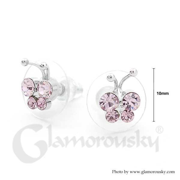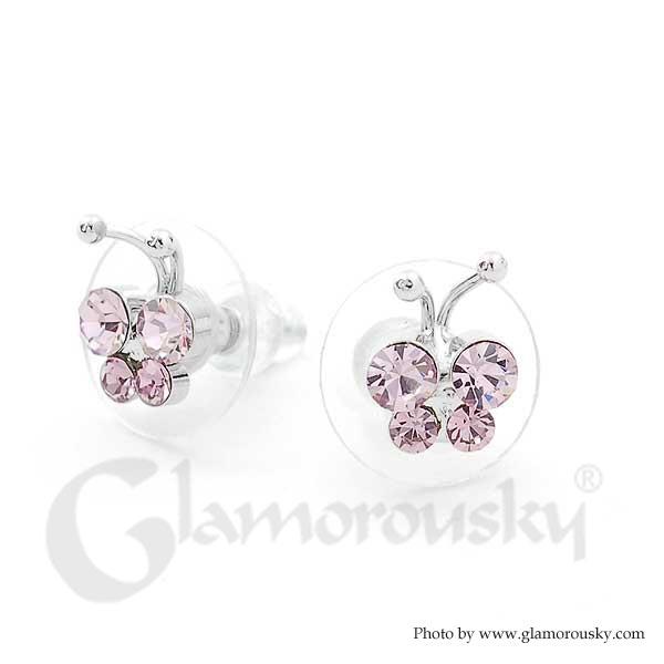 Mini Butterfly Earrings with Light Purple Austrian Element Crystals
