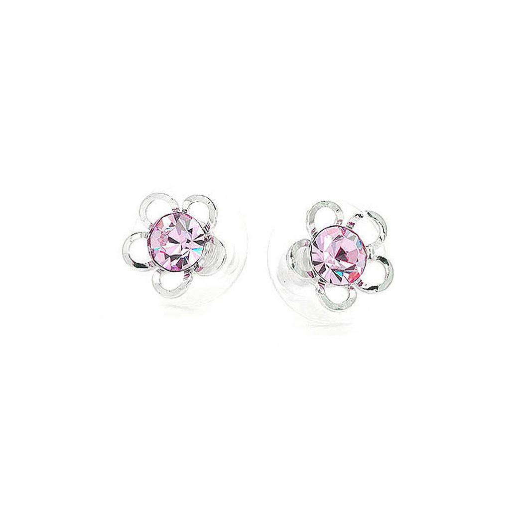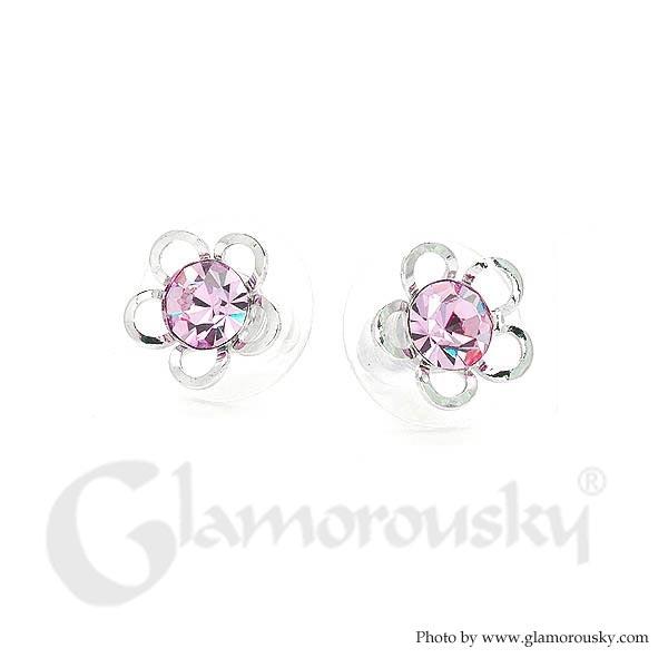 Flower Shape Pair Earrings with Purple Austrian Element Crystals