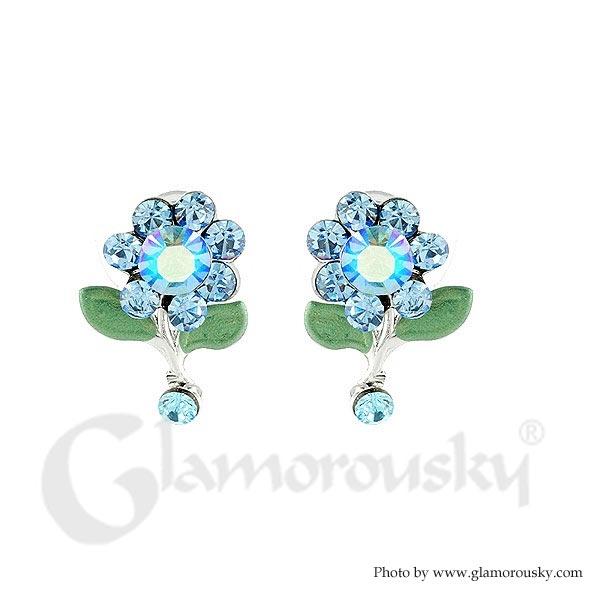 Lovely Flower Earrings with Blue Austrian Element Crystals