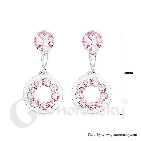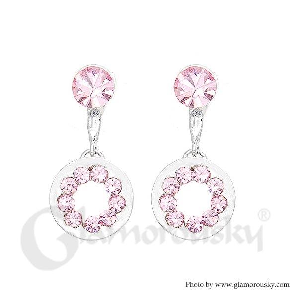 Trendy Earrings with Pink Austrian Element Crystals