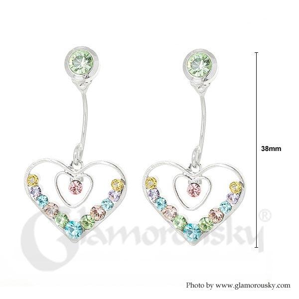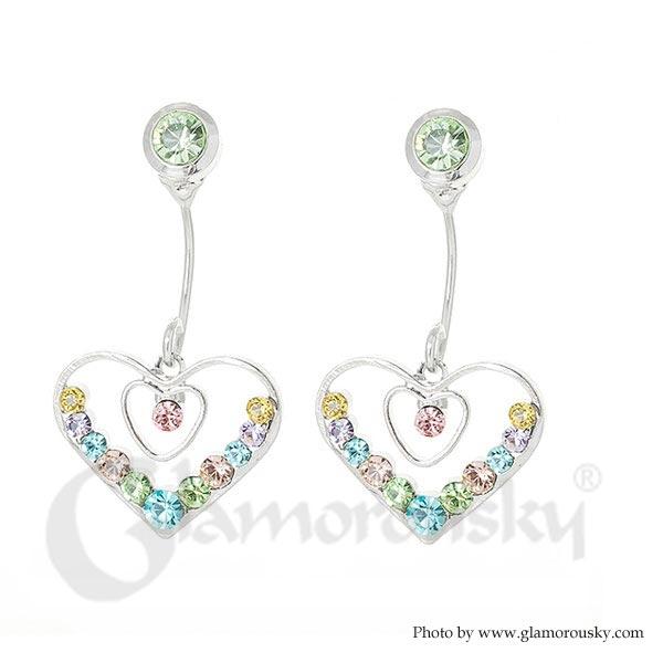 Heart in Heart Earrings with Multi-colour Austrian Element Crystals