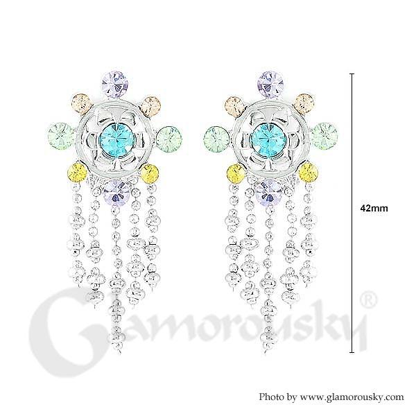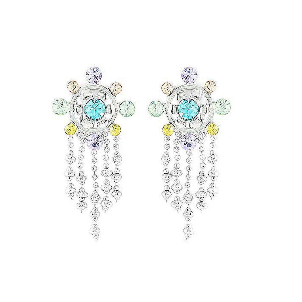 Circle Circle Earrings with Multi-color Austrian Element Crystals (Non Piercing)