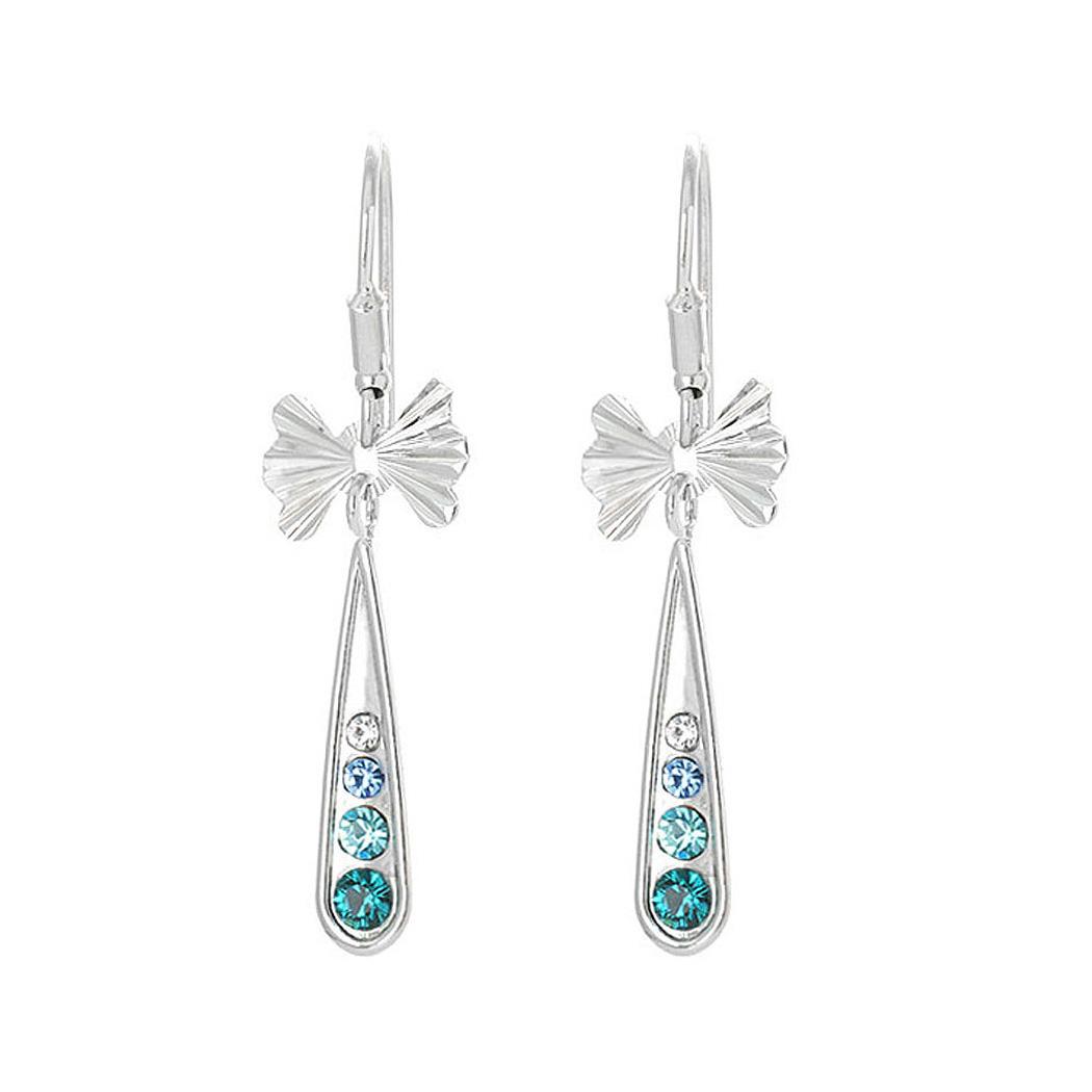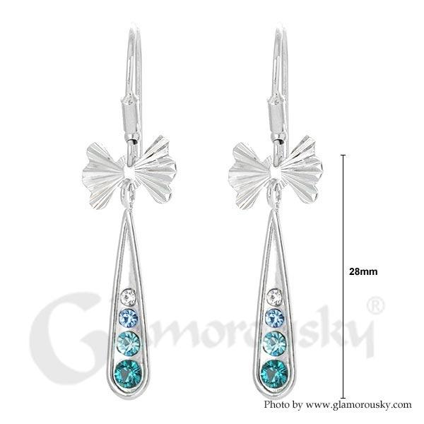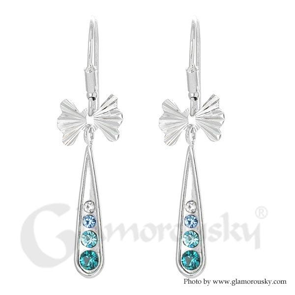 Long Shape Waterdrop Earrings with Blue Austrian Element Crystals