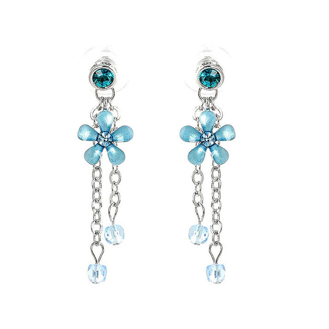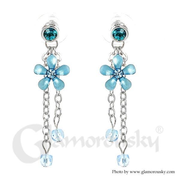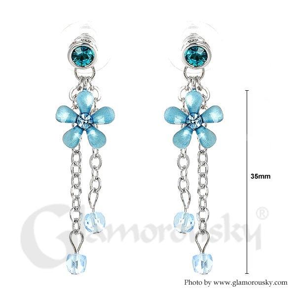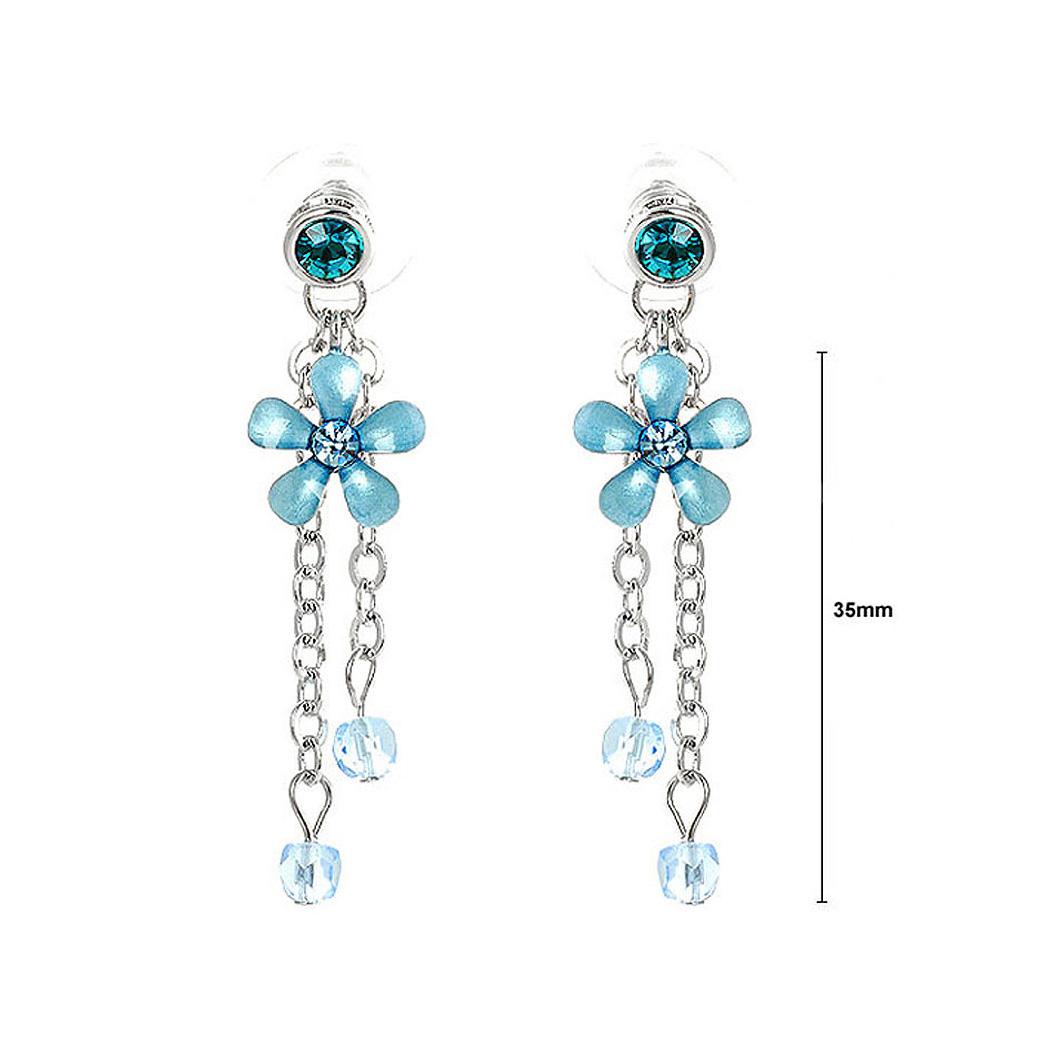Blue Flower Earrings with Blue Austrian Element Crystals