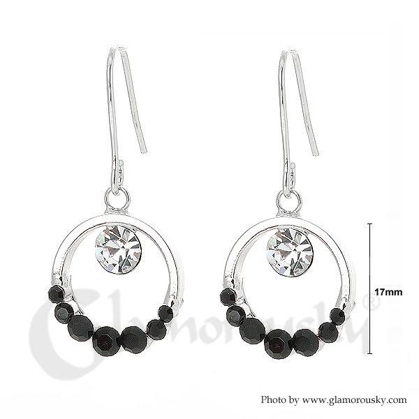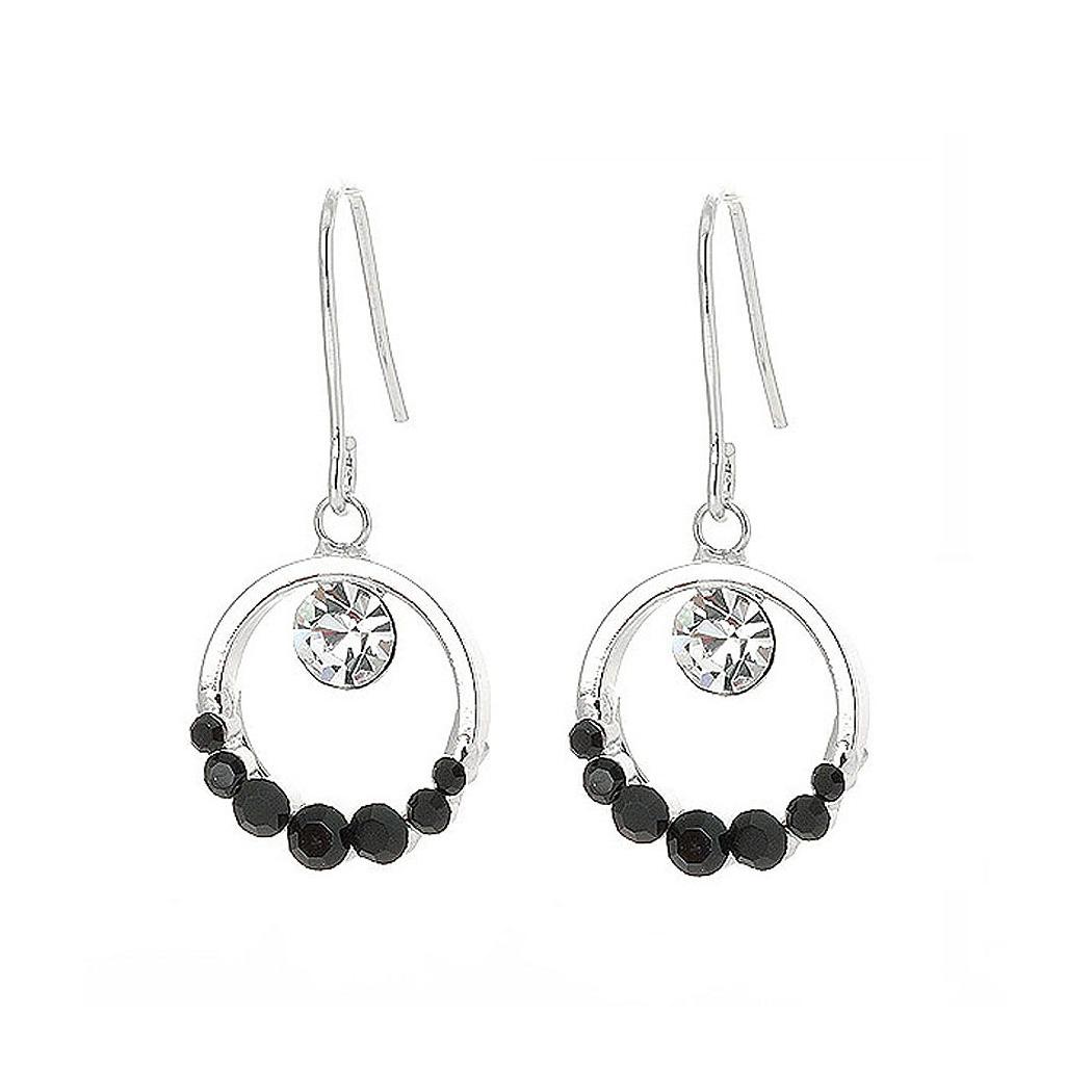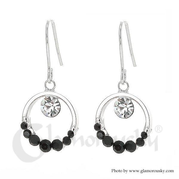 Elegant Round Earrings with silver and Black Austrian Element Crystals