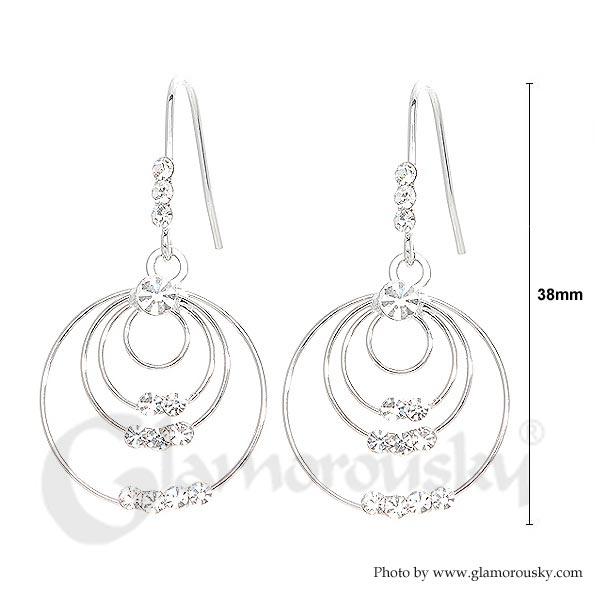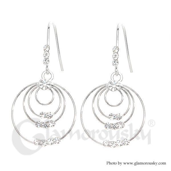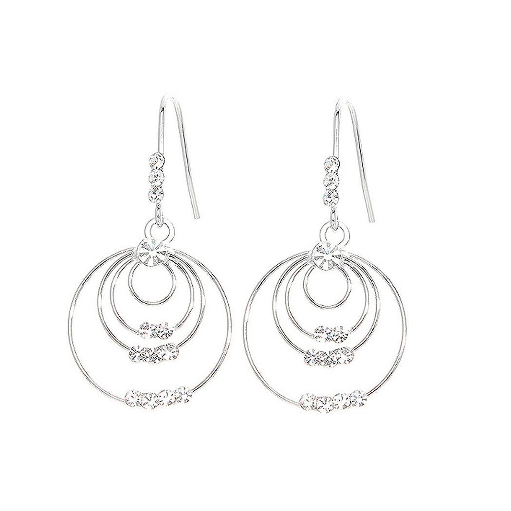 Triple Circle Earrings with Silver Austrian Element Crystals