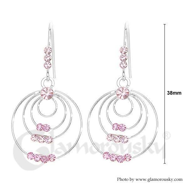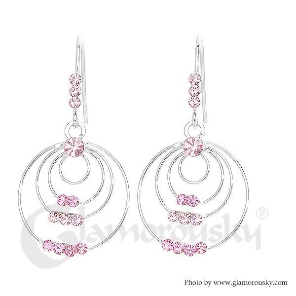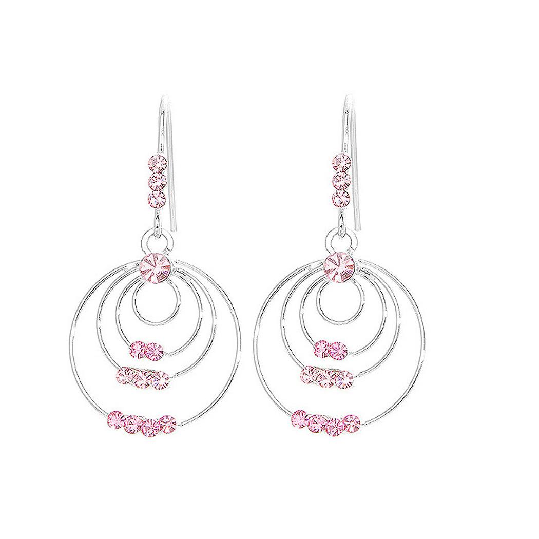 Triple Circle Earrings with Pink Austrian Element Crystals
