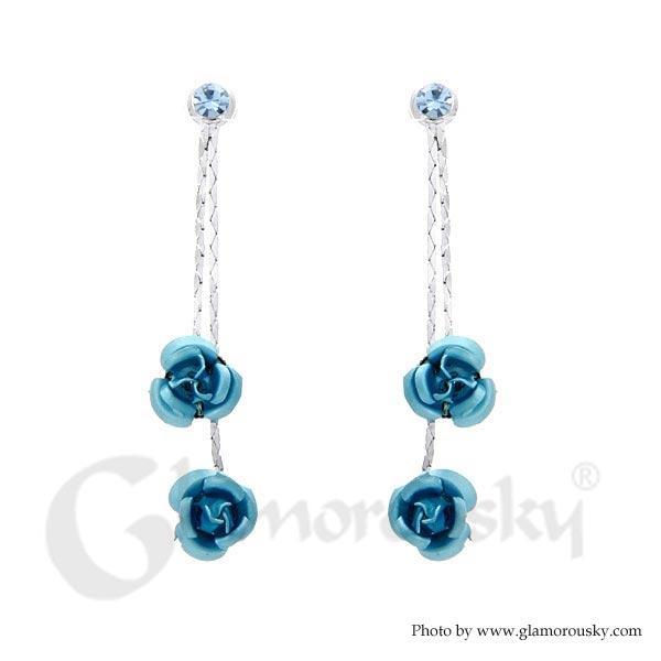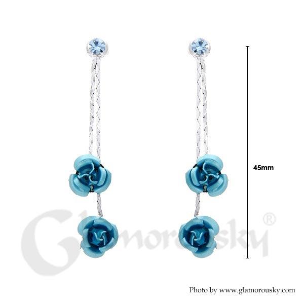Blue Rose Earrings with Blue Austrian Element Crystals