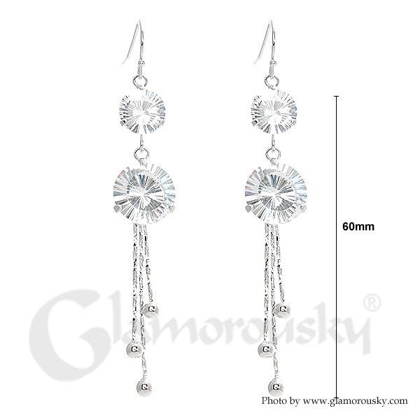 Tassels Earring with Special Sky-eye-cut CZ and Silver Austrian Element Crystal