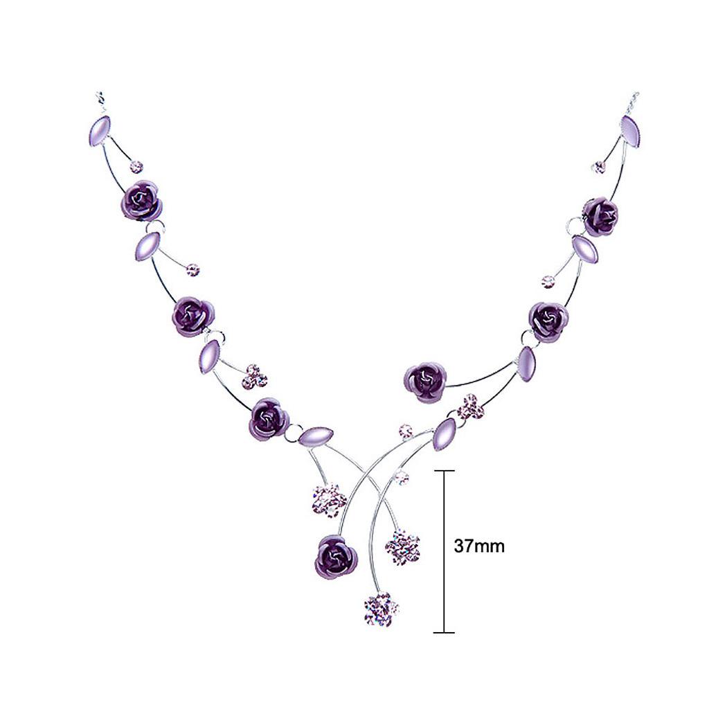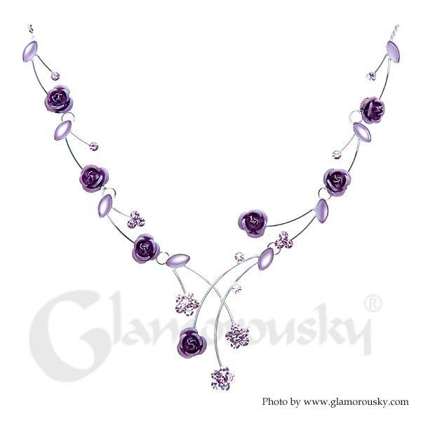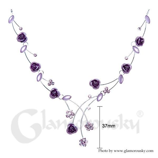Elegant Rose Necklace with Purple Austrian Element Crystals and Crystal Glass