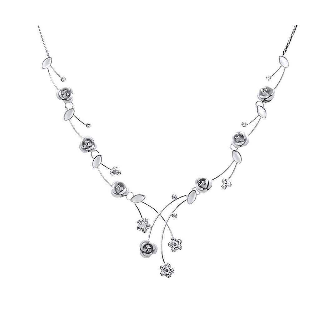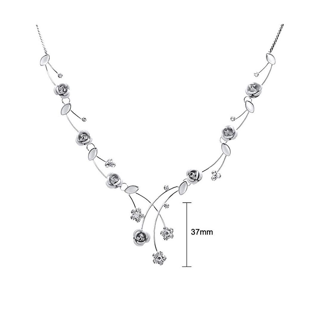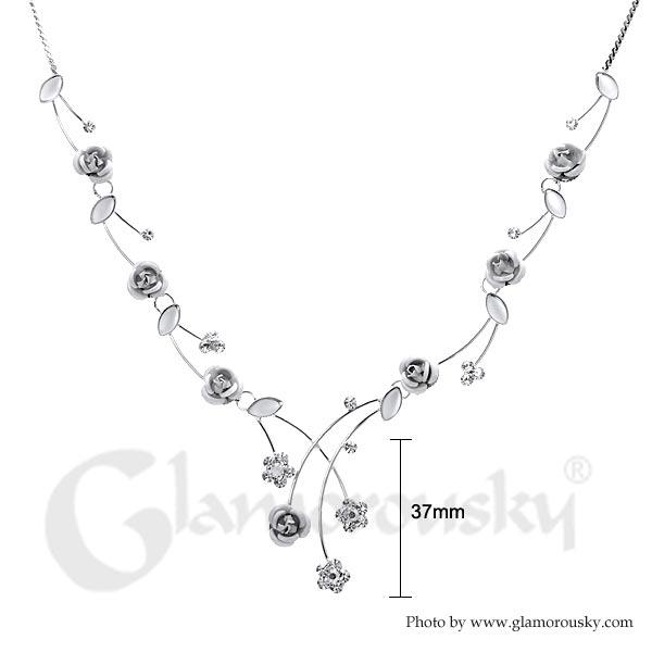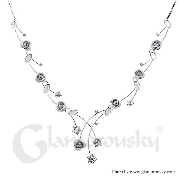Elegant Rose Necklace with Silver Austrian Element Crystals and Crystal Glass