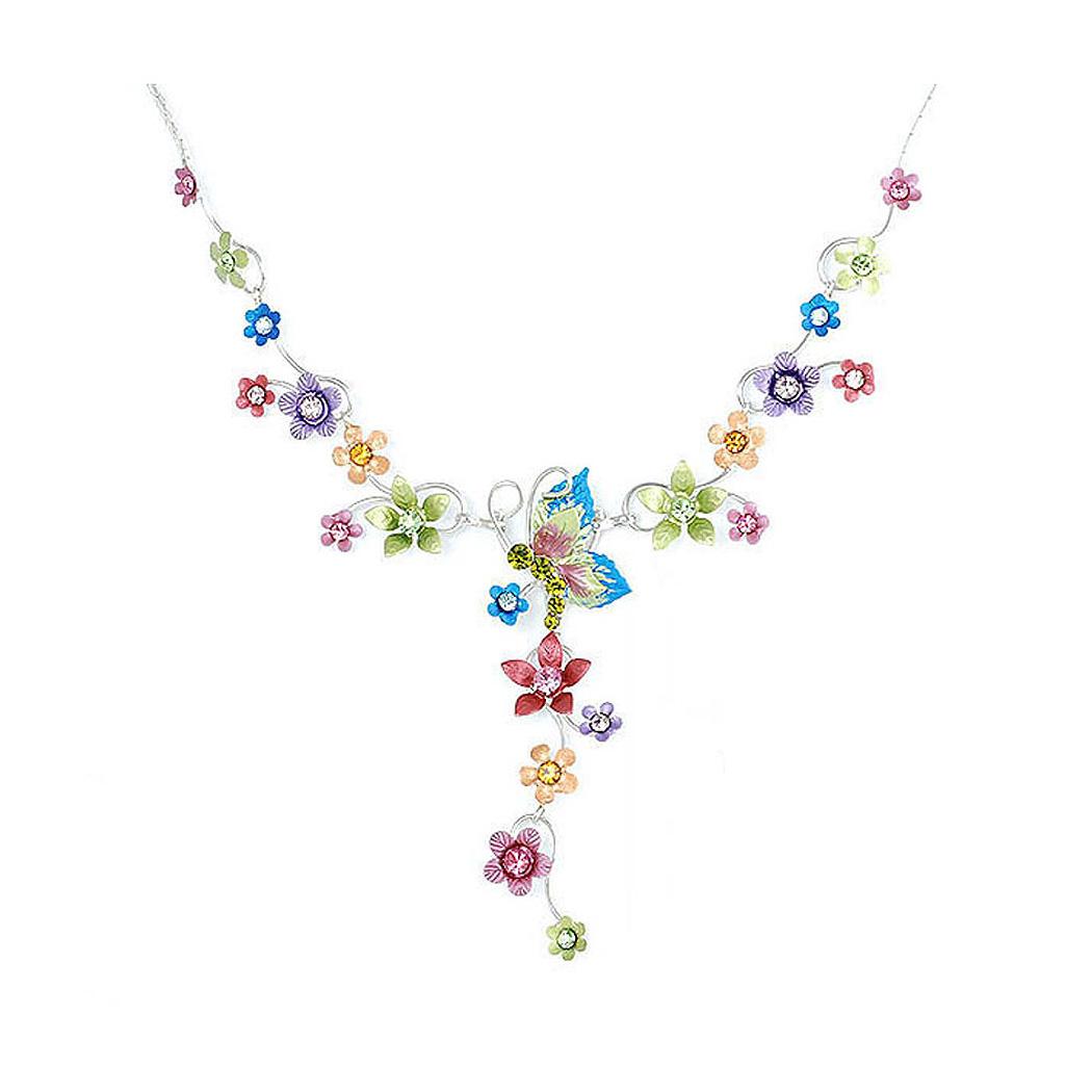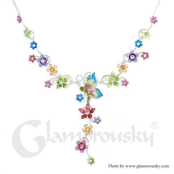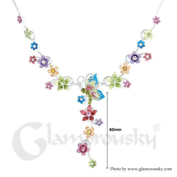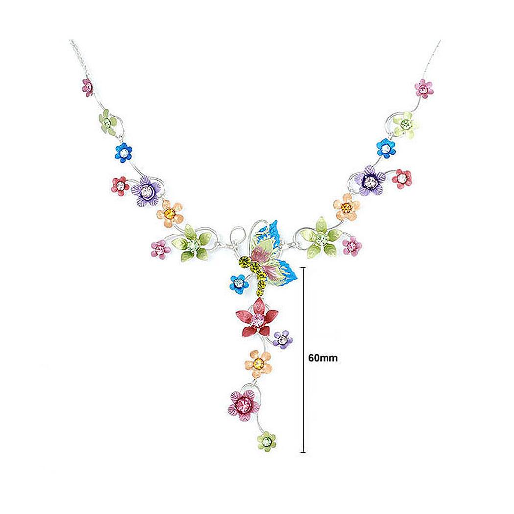Colorful Butterfly and Flower Necklace with Multi-color Austrian Element Crystals