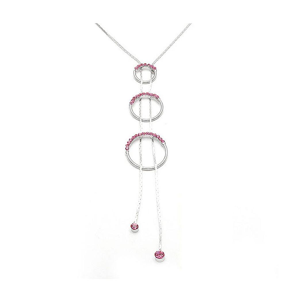 Three Circle Elegant Necklace with Pink Austrian Element Crystals