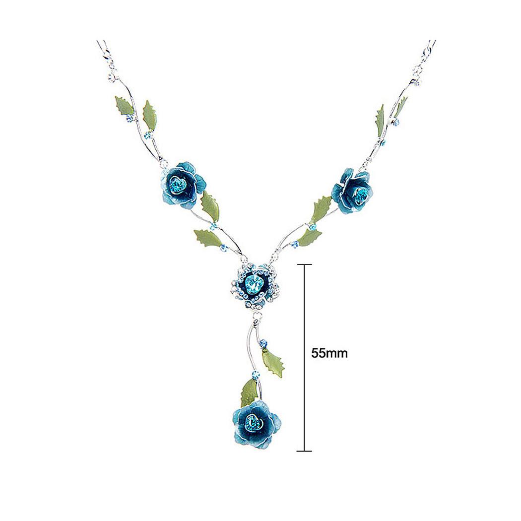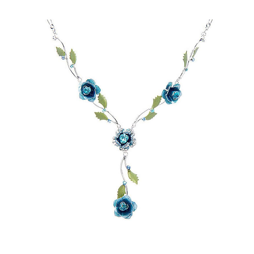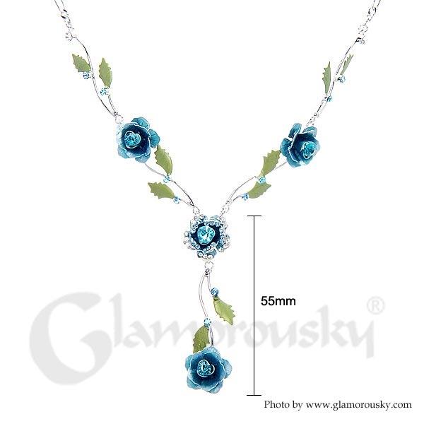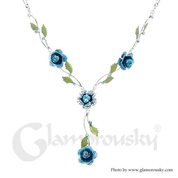 Elegant Rose Necklace with Blue Austrian Element Crystals