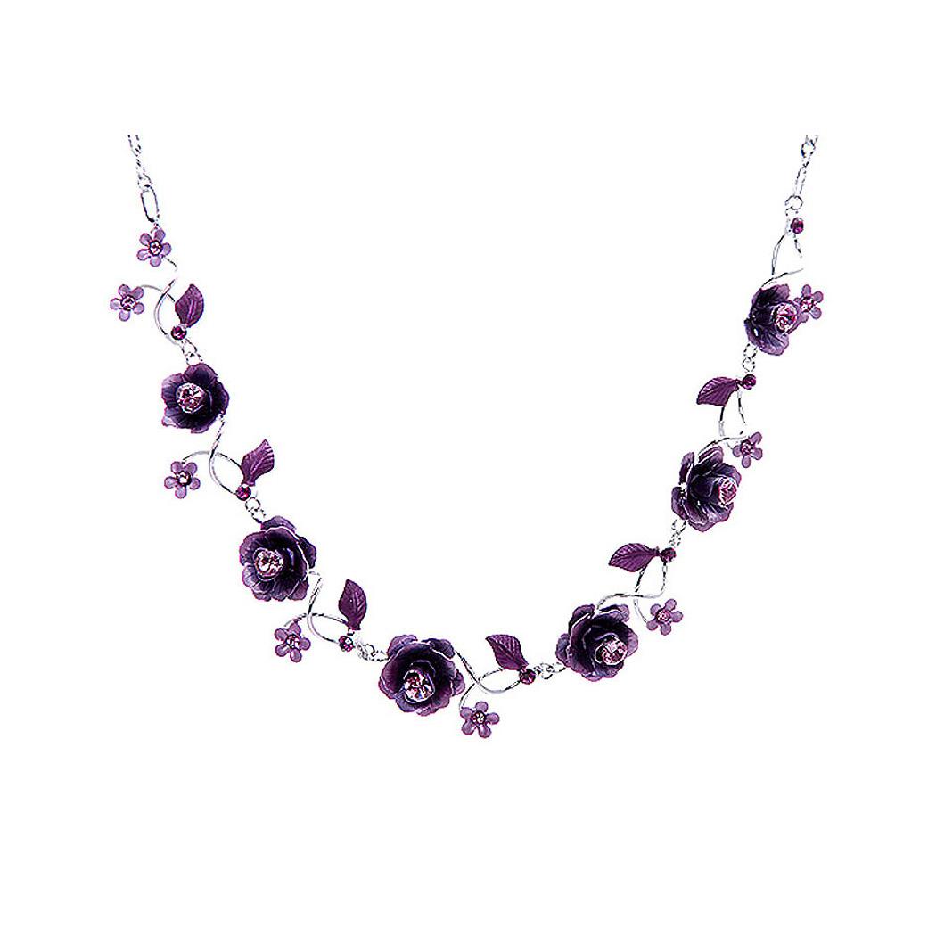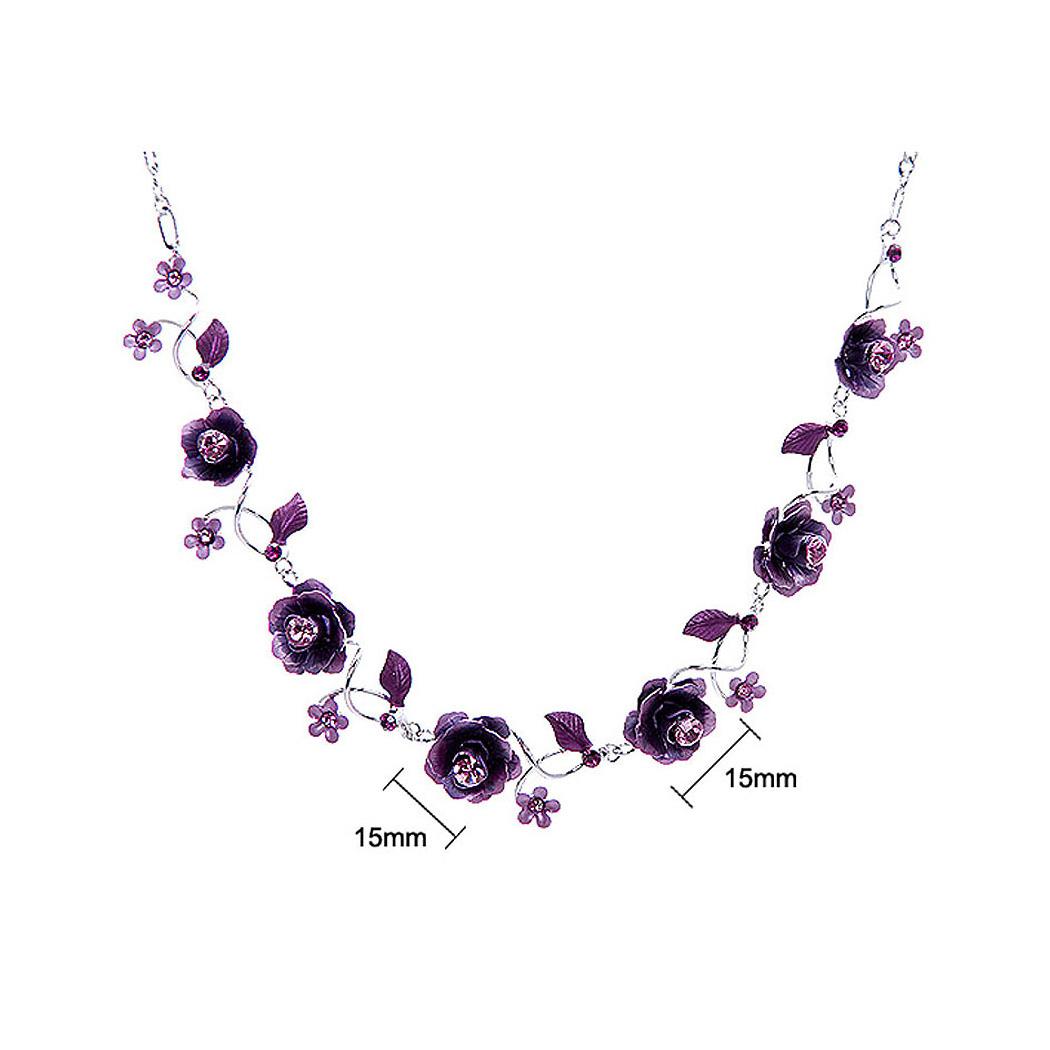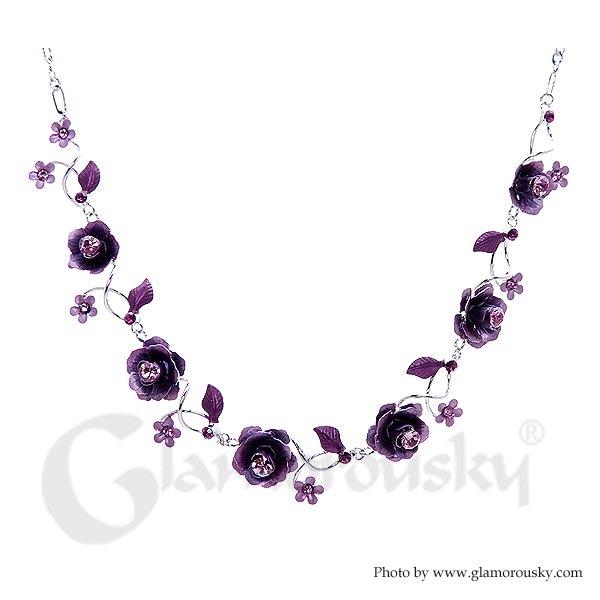 Elegant Rose Necklace with Purple Austrian Element Crystals