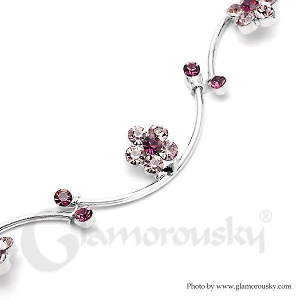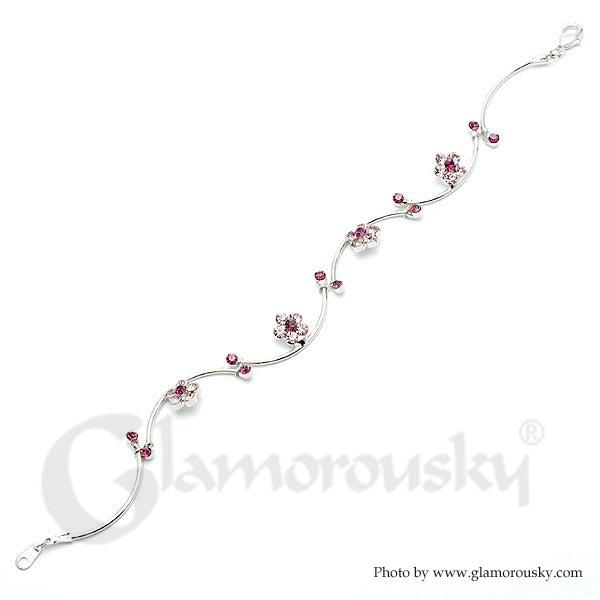 Flower and Wave Bracelet with Purple Austrian Element Crystals