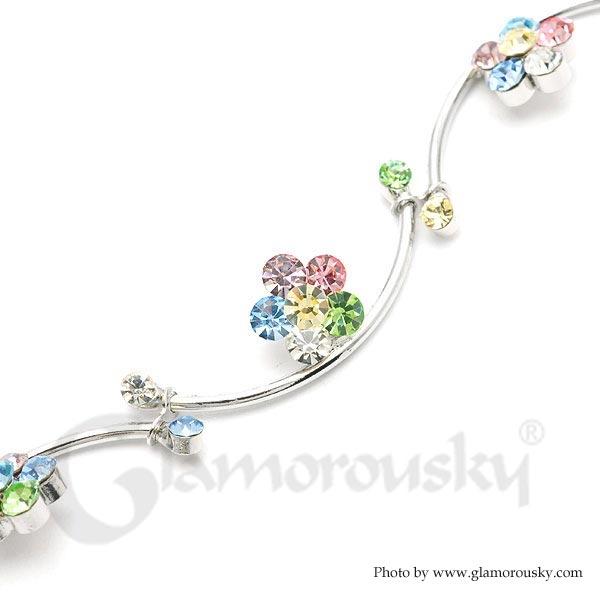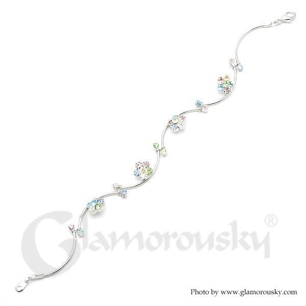 Flower and Wave Bracelet with Multi-colour Austrian Element Crystals