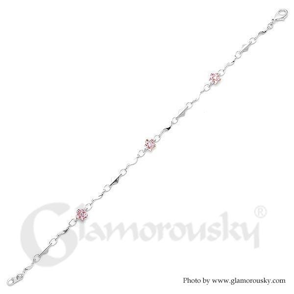 Category:BraceletCollection:Twinkling FlowersMetail:Silver-Plated PewterStone:Austrian Crystal(Pink)