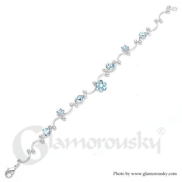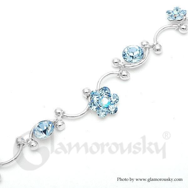 Flower on Wave Bracelet with Blue Austrian Element Crystals