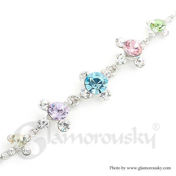Glistening Bracelet with Silver Austrian Element Crystals and Multi Color CZ Beads