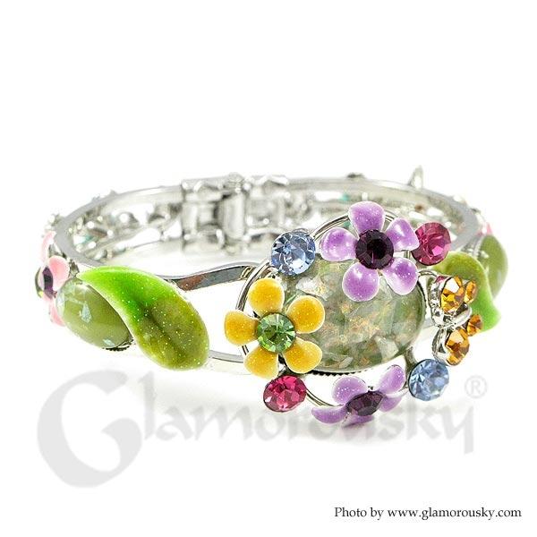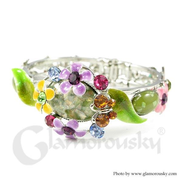 Elegant Flower Bangle with Austrian Element Crystal