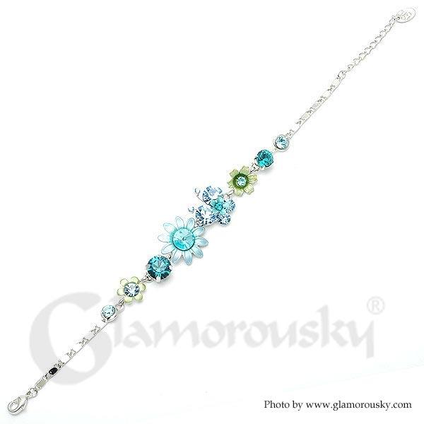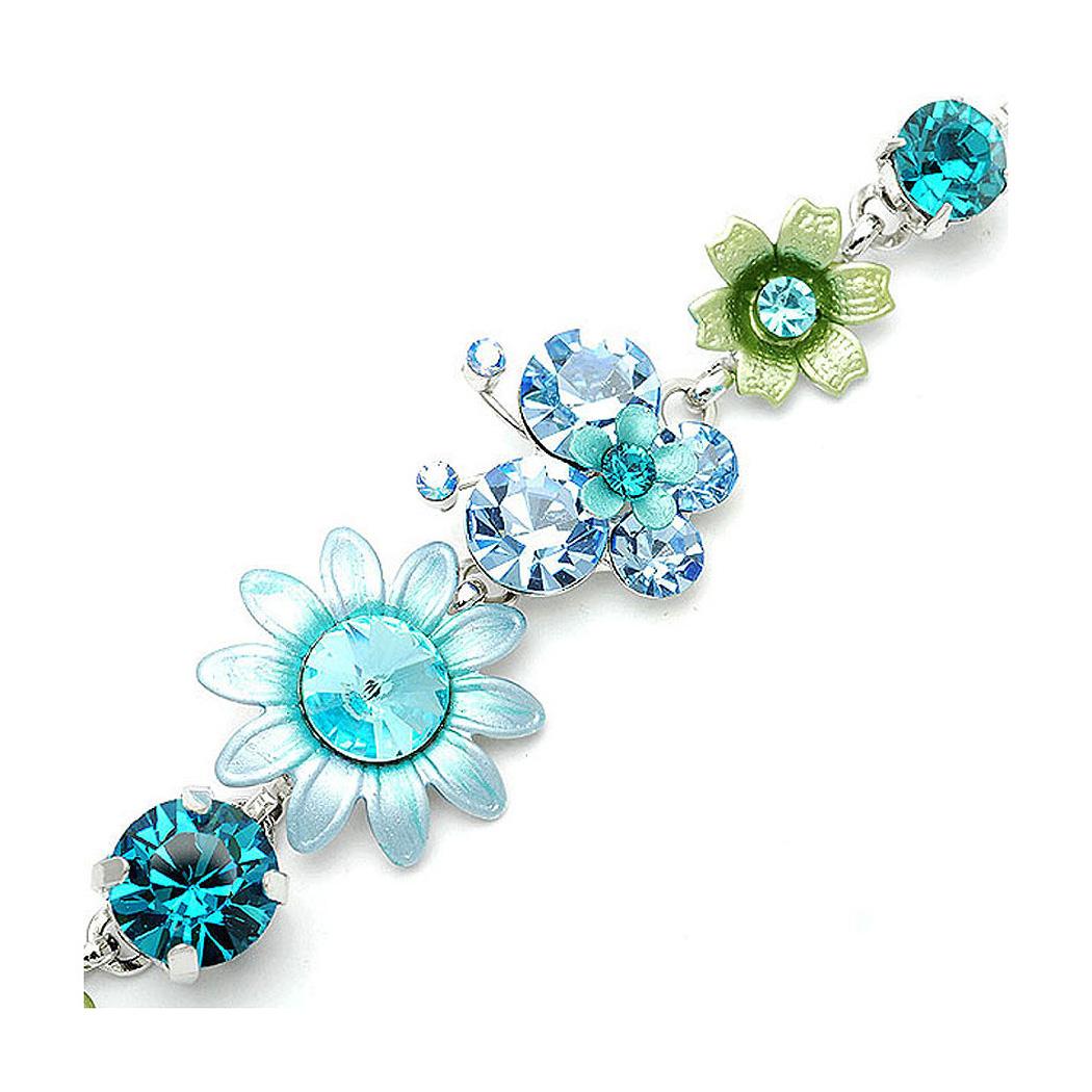 Flower and Butterfly Bracelet with Blue Austrian Element Crystals