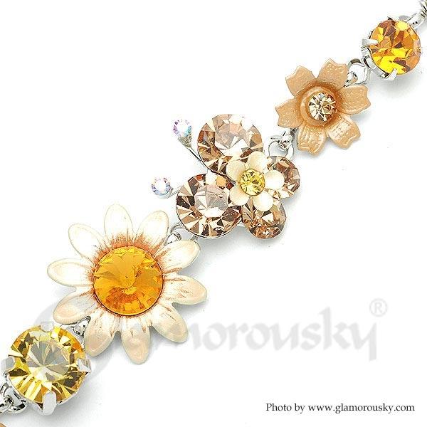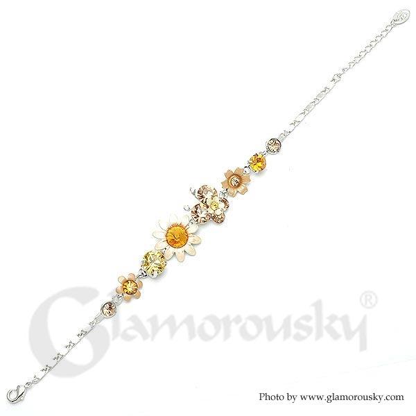 Category:BraceletCollection:Flower NymphMetail:Silver-Plated Pewter(Silver)Stone:Austrian Crystal(Orange)