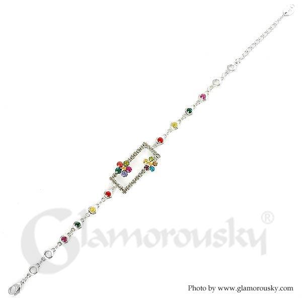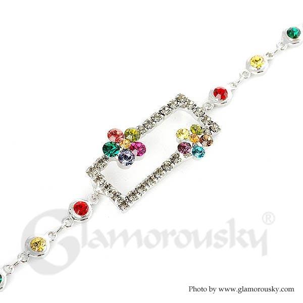 Flower on Window Bracelet with Multicolor Austrian Element Crystals
